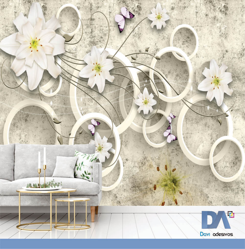 Papel de parede Flores e Arcos- Linha sala