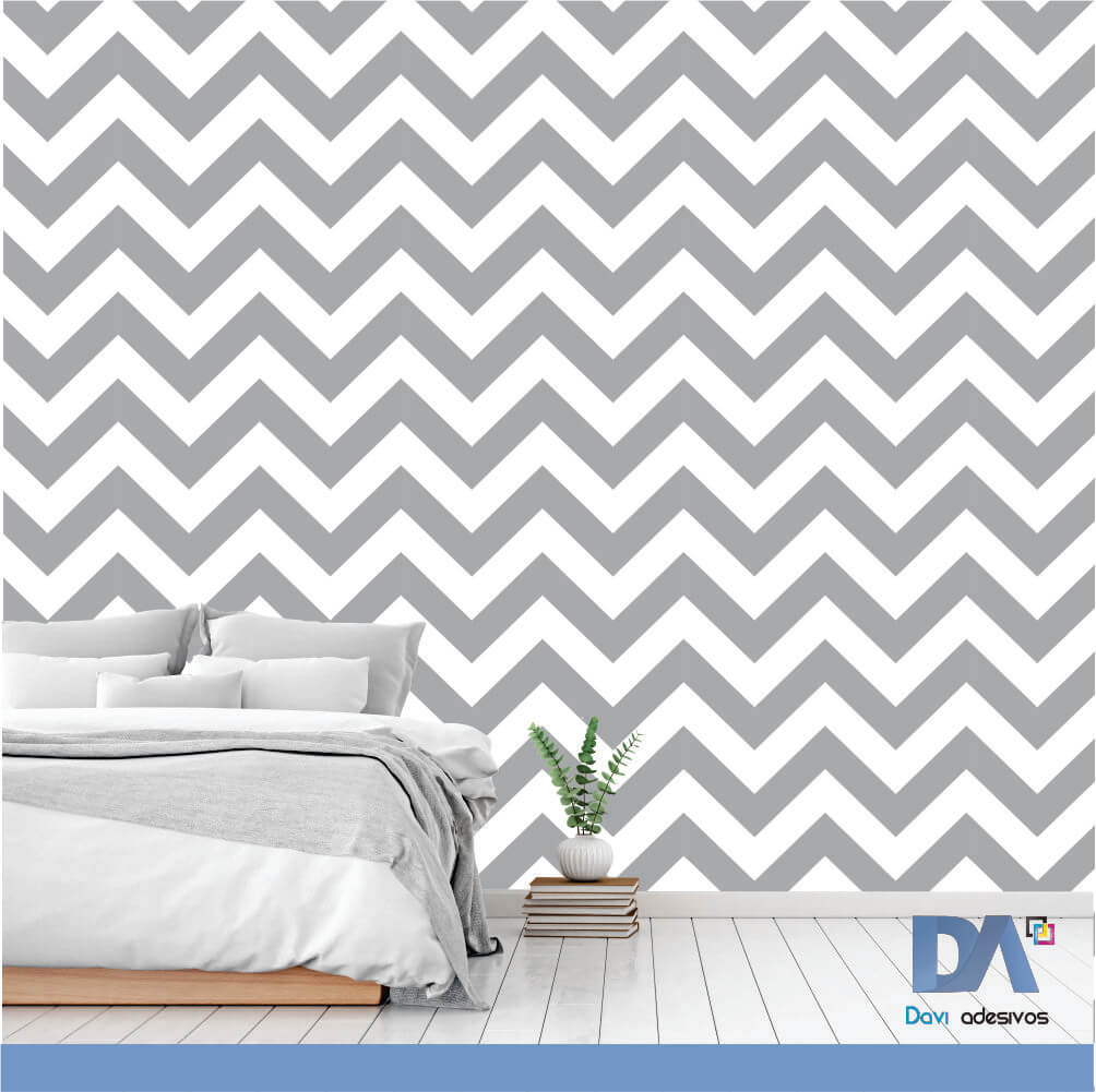 Papel de parede Zig Zag Monocromático – Linha quarto
